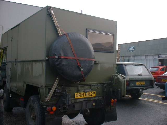 (Strictly speaking they don't like people taking a camera anywhere near the place but I was careful not to snap anything too sensitive, like the new Range Rover!) A few pics of the car park (the best place to go during an AGM?) and quite a few of the way Roger Hill-Cottingham has mounted his spare wheel in response to requests from a few owners who'd like to try the same. |