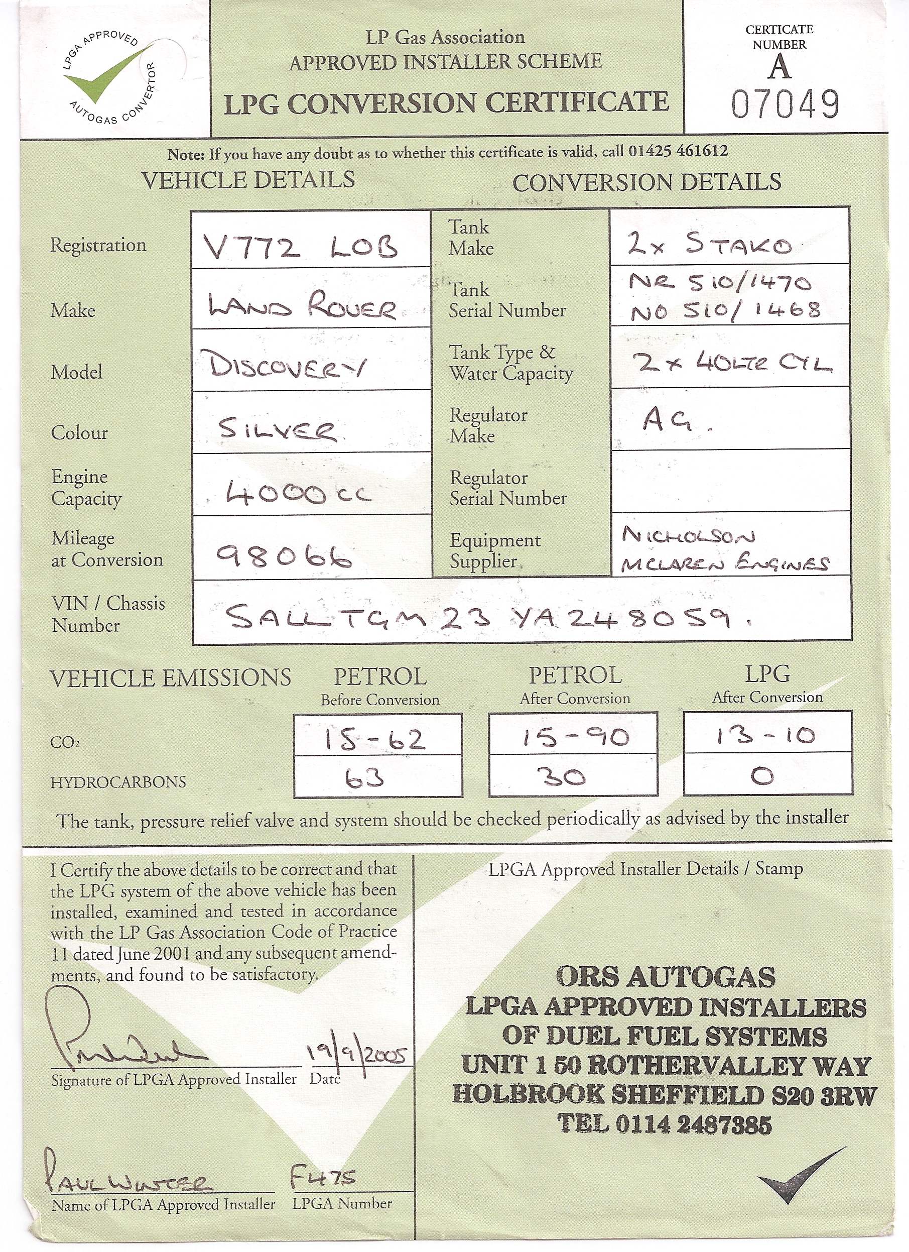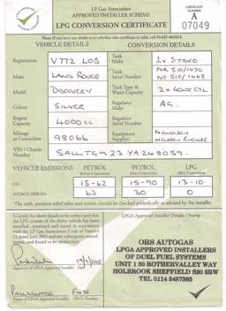 This is the LPG Certificate, please feel free to call the