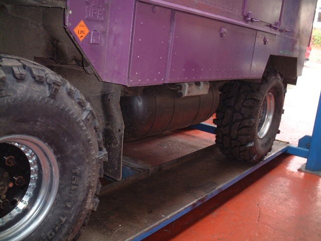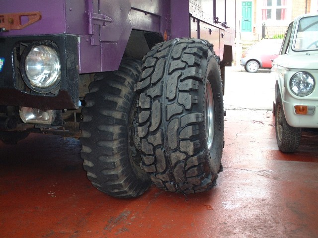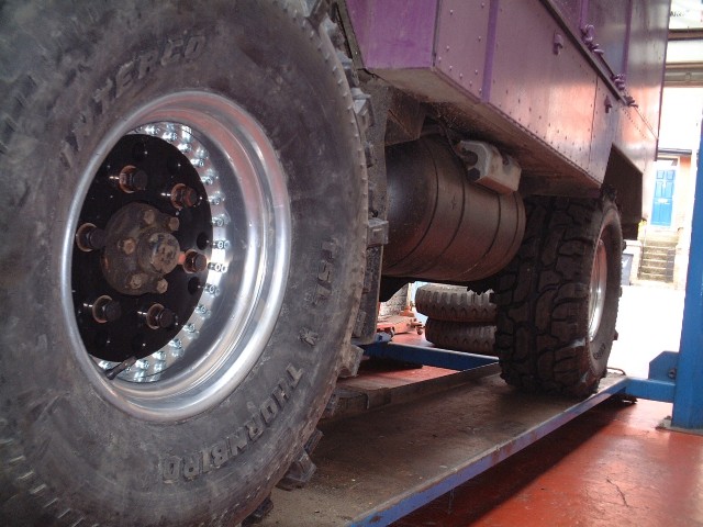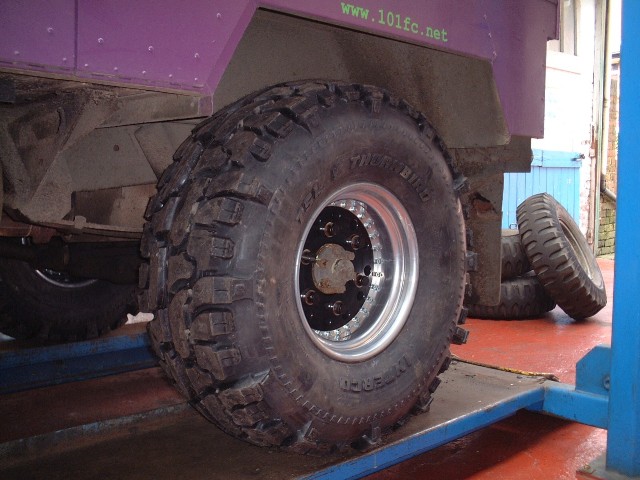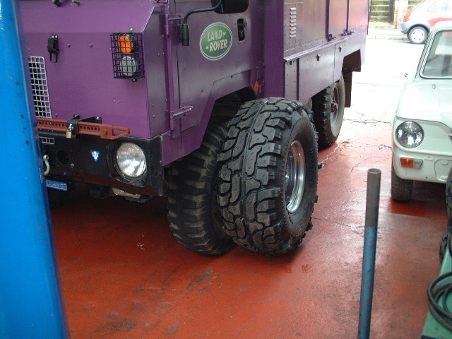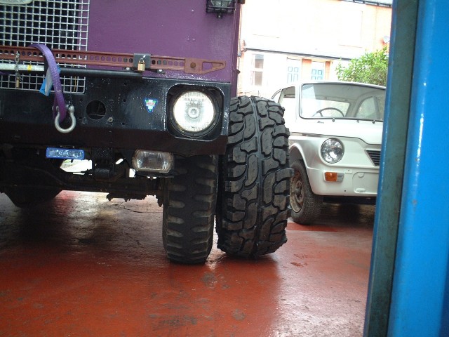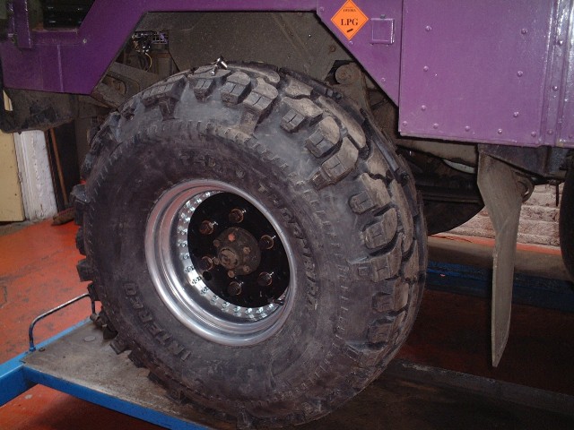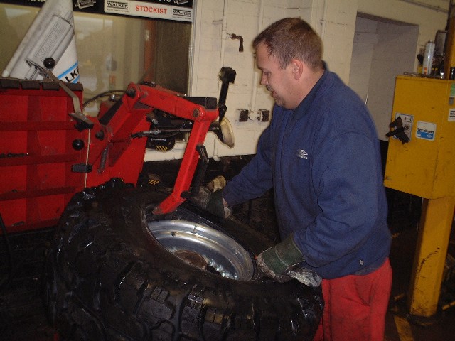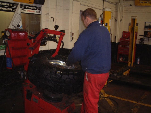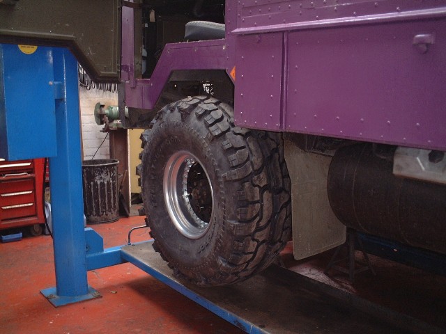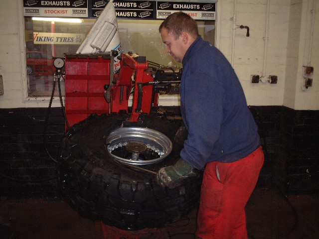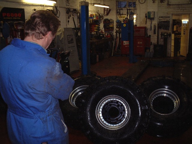 First stop was Attercliffe Tyre Services in Sheffield. They're used to doing commercial vehicles but when they saw the extent of job in hand, took a deep breath...