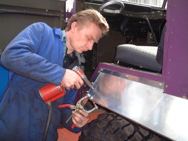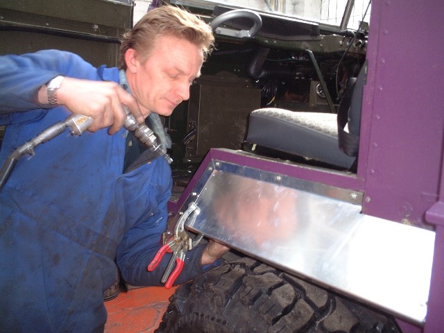 We knew that the front would need to be extended as the cab is a tad narrower than the body on a 101 Ambulance, so Warren went to work fabricating some strengthened wheel arches...