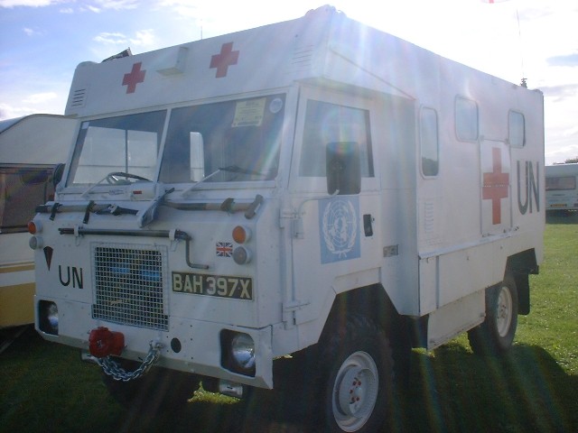 | BAH 397X Parked just behind the 101 Club stand I've no idea who owns this nice UN ambulance body. |