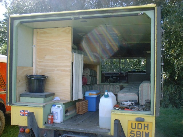 | UDH 581W We met up with Philip Douglas on the M1 and headed, in convoy with Steve in his 90, for Stoneleigh! Phil hasn't had 'Fran' for long, but has really got stuck into the camper conversion in readiness for his planned Operation Africa Expedition |