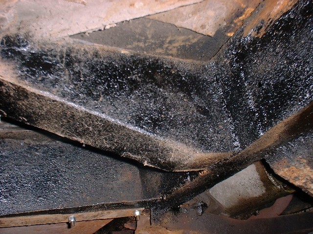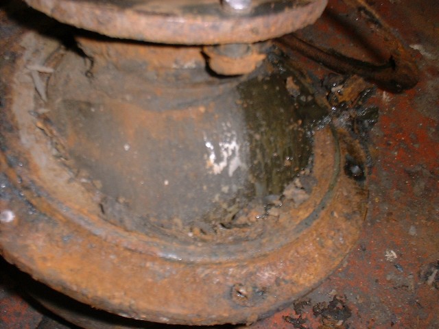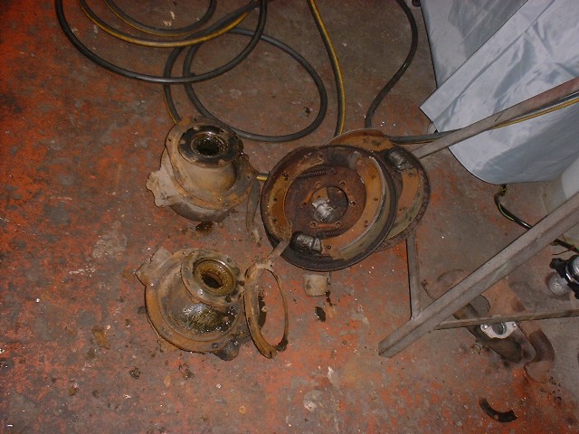 | EEK! It gets worse! Almost all of the underside welded, all running gear replaced, rounded splines, rotten drums more rust, rust, rust and rust. It'll be worth it though really it will (trust me, I'm a doctor. Sadly, I'm not a mechanic!) At least the petrol tank is now secure! :-) |