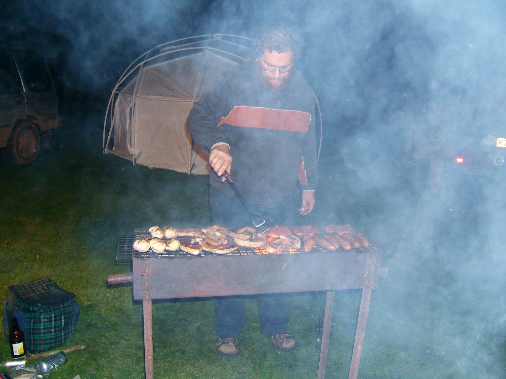 | 15 - 16 October 2005 Pembrokeshire Video: 40MB Windoze Media file 26MB Real Media file Credits and backslaps... Back at Bass camp, Austin got the industrial BBQ going! and Steve got the firepit out! The rest of the night became something of a blurr... (either that, or the exotic aromas from our neighbours were wafting into our Bass camp!) I'm sure that fire needs some more wood on it... The next morning we surveyed the damage! ...and met some of the neighbours :-) Off to find Sunday lunch... The Old Post Office - with Purple walls! [ NEXT PAGE ] |